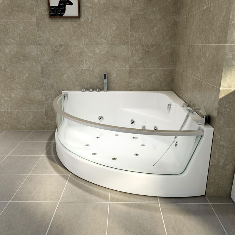 Las bañeras de la esquina generalmente se instalan en las esquinas de dos paredes adyacentes para agregar más espacio al interior del baño, al tiempo que aumenta el atractivo visual y el más uso de la relajación y la terapia, estas bañeras son más similares a las bañeras de hidromasaje que las bañeras regulares.