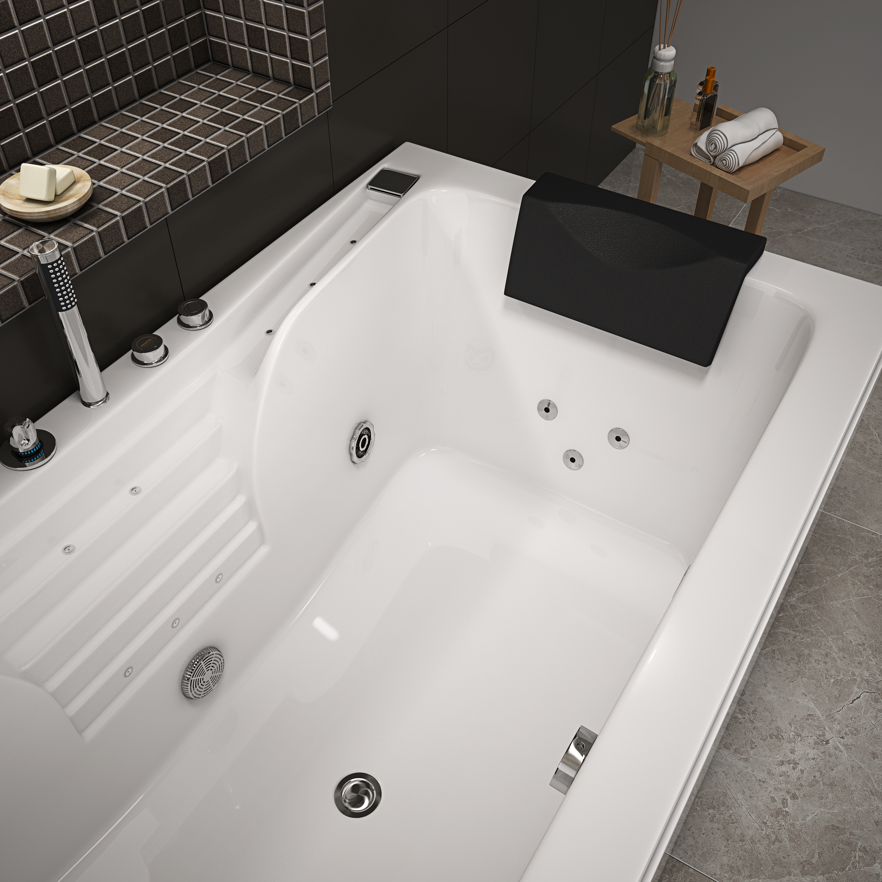 El principio de trabajo del bañera es que a través del movimiento del motor, la boquilla en la pared interna de la bañera rocía el flujo de agua mezclado con el aire, causando la circulación del flujo de agua, produciendo así un efecto de masaje en el cuerpo humano. A través del efecto de masaje de la boquilla de la bañera, puede tener el efecto del tratamiento de la aptitud física y aliviar el estrés en el cuerpo humano.