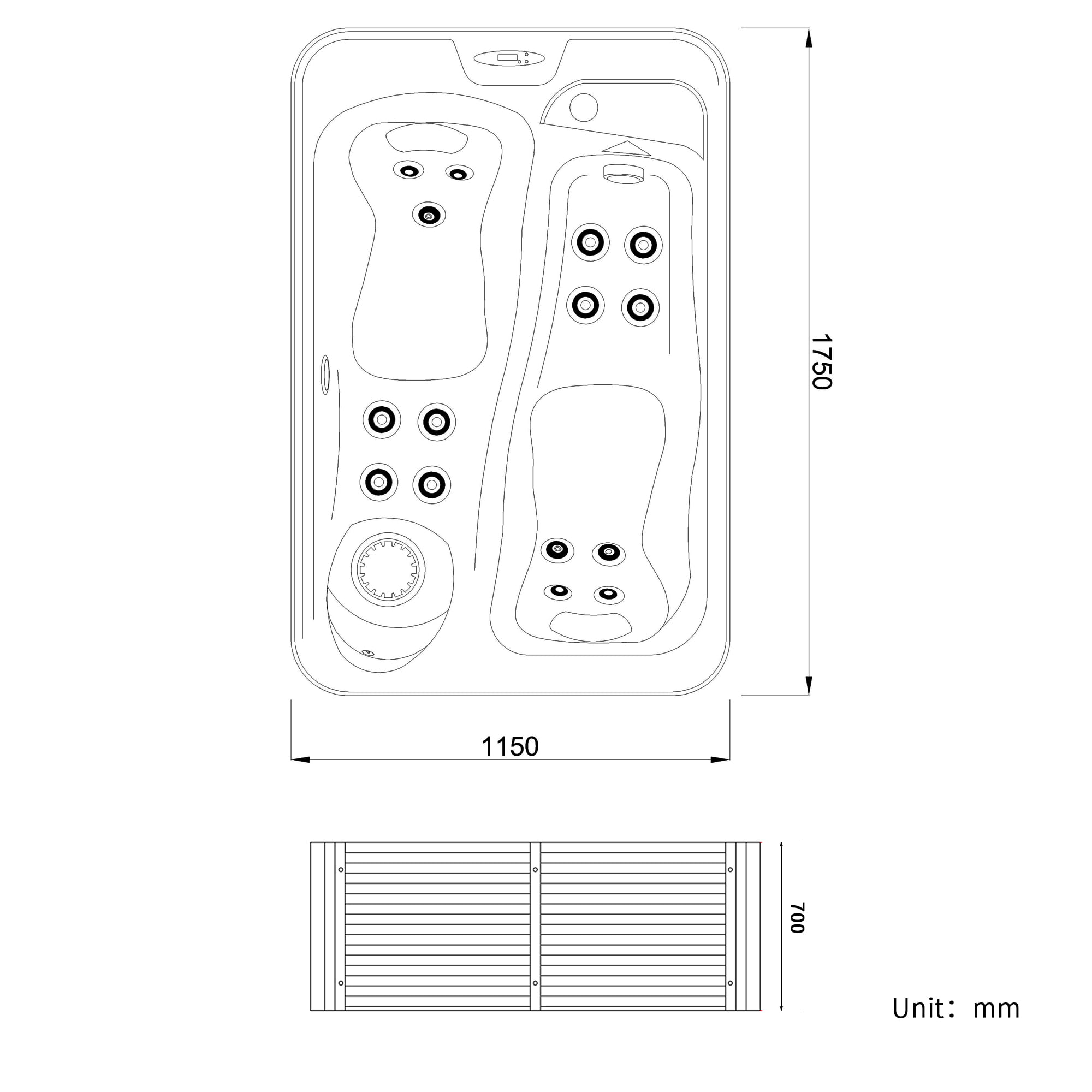 | Dimensiones de capacidad de asiento | 2 adultos (2 tumbonas) 1750*1150*700 mm 68.9*45.2*27.6 ″ |