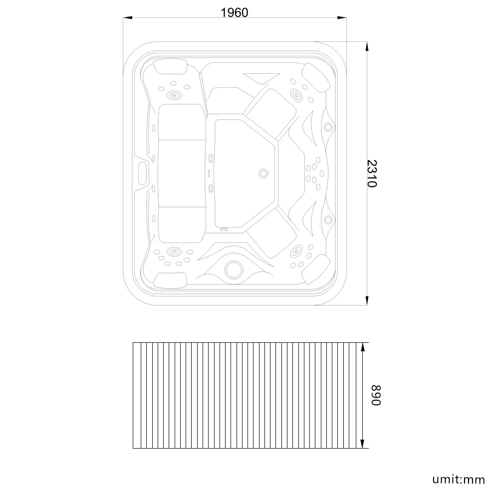 | Dimensiones de capacidad de asiento | 6 adultos (2 tumbonas 4 asientos) 2310*1960*890 mm 91*77.1*35 " |