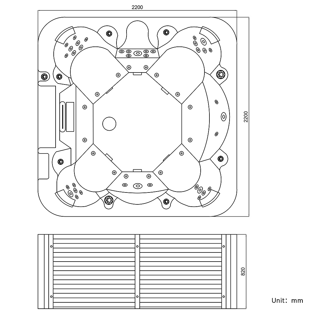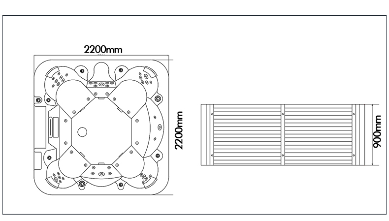 | Dimensiones de capacidad de asiento | 6 adultos (6 asientos) 2200*2200*900 mm 86.7*86.7*35.4 ″ |