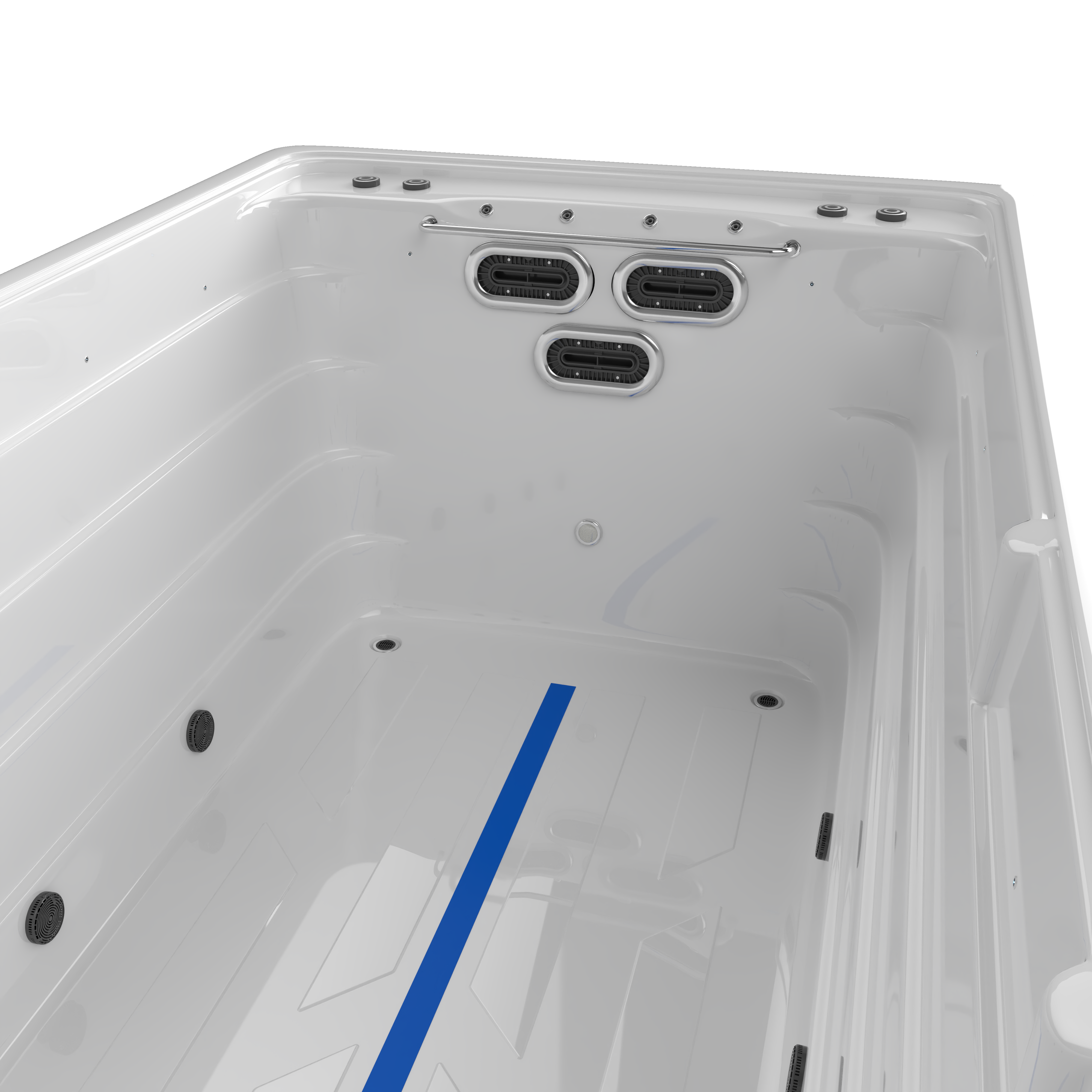El sistema de contracorriente incluye 3 chorros de arroyos de río y una bomba de agua, que proporciona una corriente de natación suave y consistente. El sistema cuenta con 3 bombas de una sola velocidad (2p cada una) y 1 bomba de circulación (0.35p), lo que garantiza un poderoso flujo de agua para una experiencia de natación auténtica.