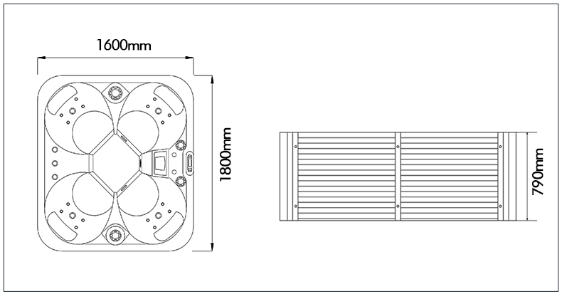 | Dimensiones de capacidad de asiento | 4 adultos 1800*1600*790 mm |