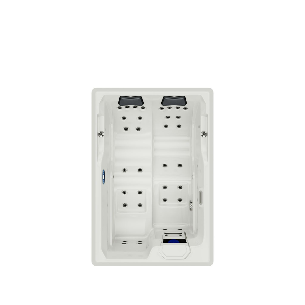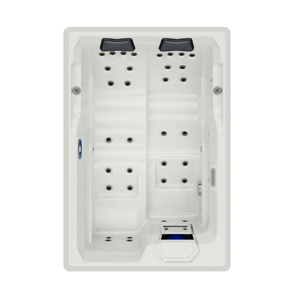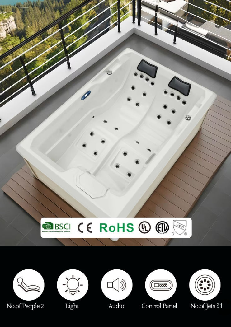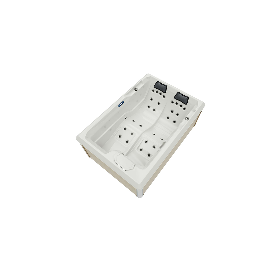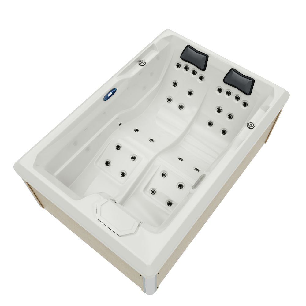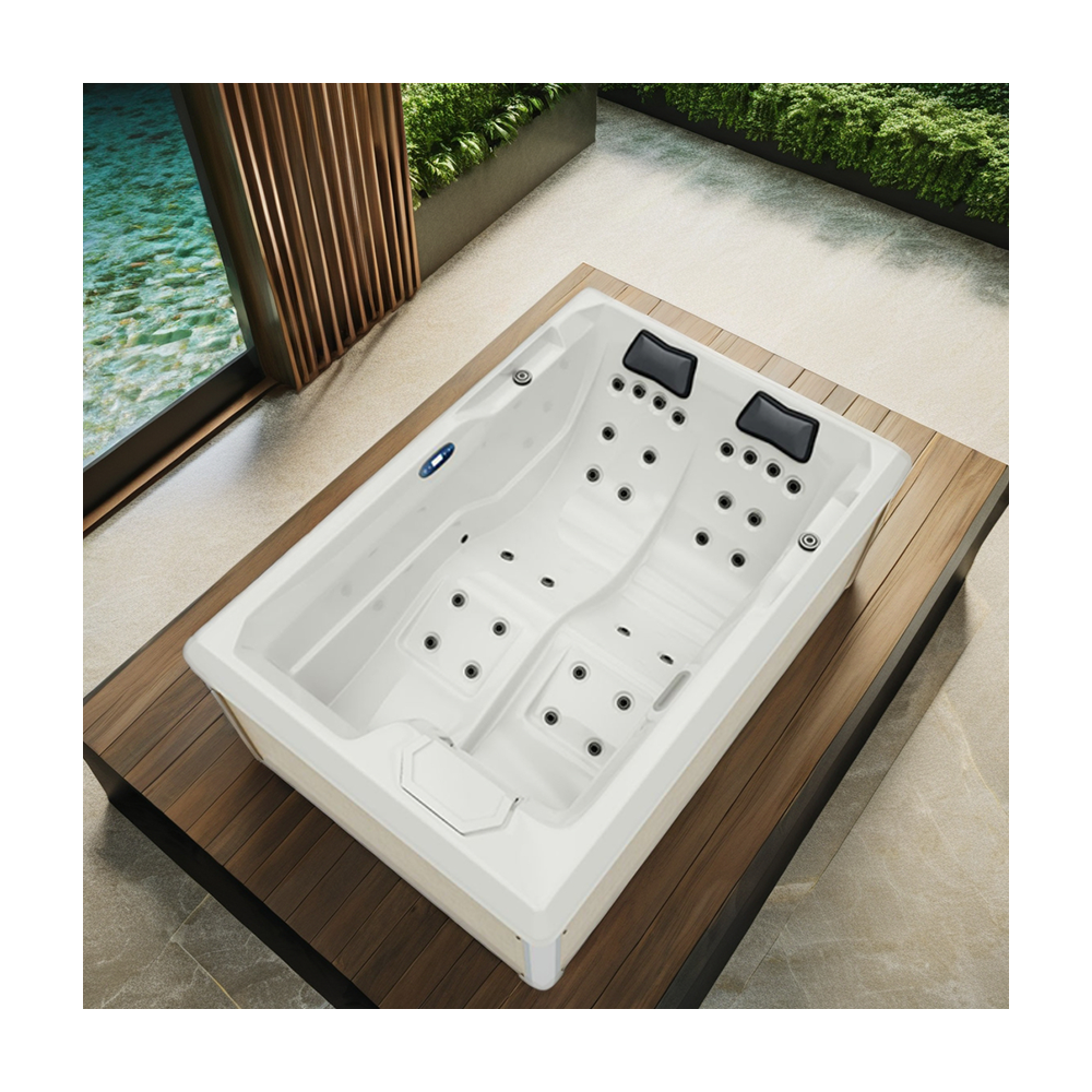 Disfrute de una lujosa experiencia de spa con nuestra moderna bañera de spa caliente rectangular. Esta espaciosa bañera se adapta cómodamente a 2 adultos y proporciona un masaje relajante con su característica de remolino al aire libre. Transforme cualquier espacio al aire libre en un oasis privado con esta bañera de hidromasaje.