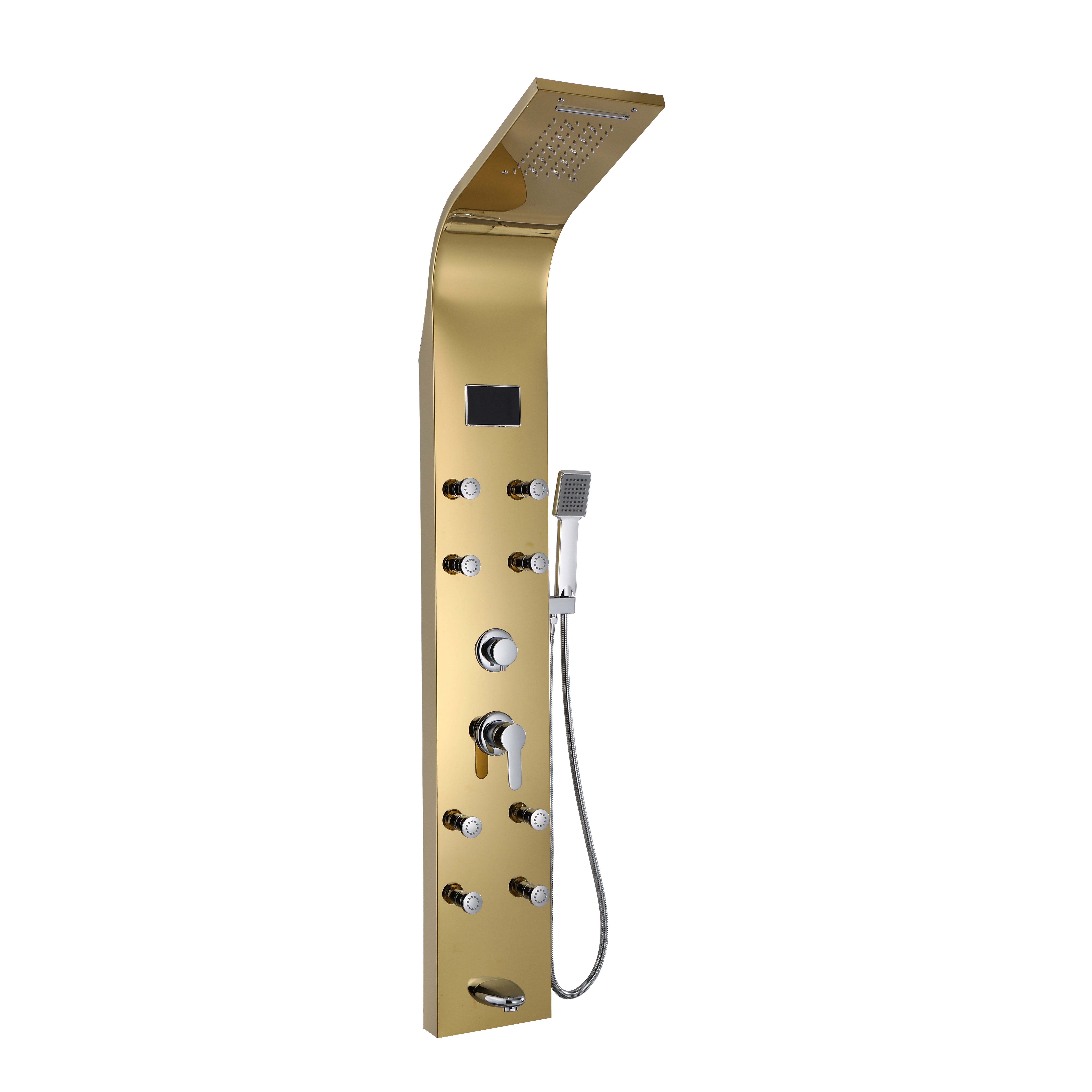 Shower panel is an update of shower head.With the development of the sanitary ware industry and the improvement of people's living standards, more and more families began to use shower panel, and the functions of shower panel have become more and more abundant; the pace of urbanization is getting faster and faster, many people enjoy to take a quick and comfortable shower after tired work when getting home. The installation height can be adjusted according to require; the one-piece aluminum alloy shower panel can be sprayed with various colors of coating, and can also be made into different lengths according to different requires. The shower panel is cheap, safe and convenient to use.