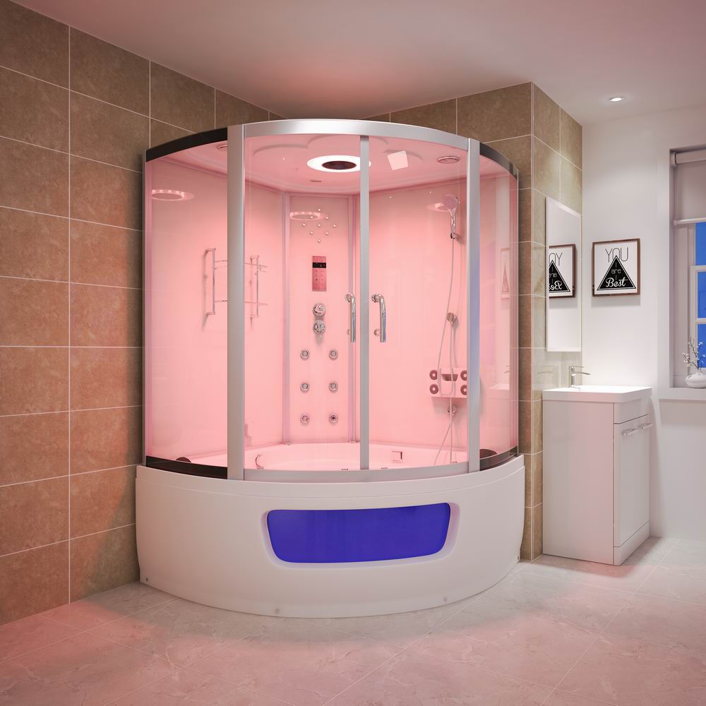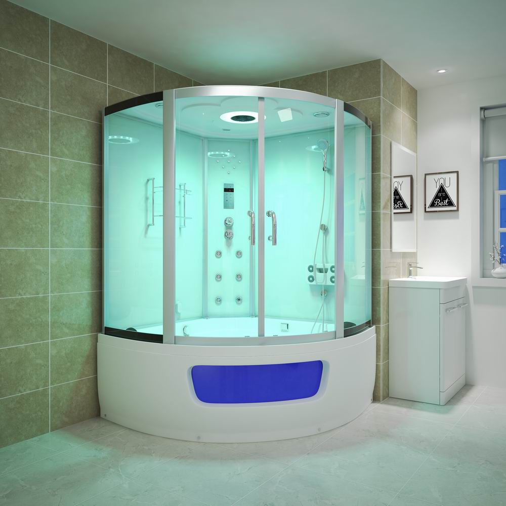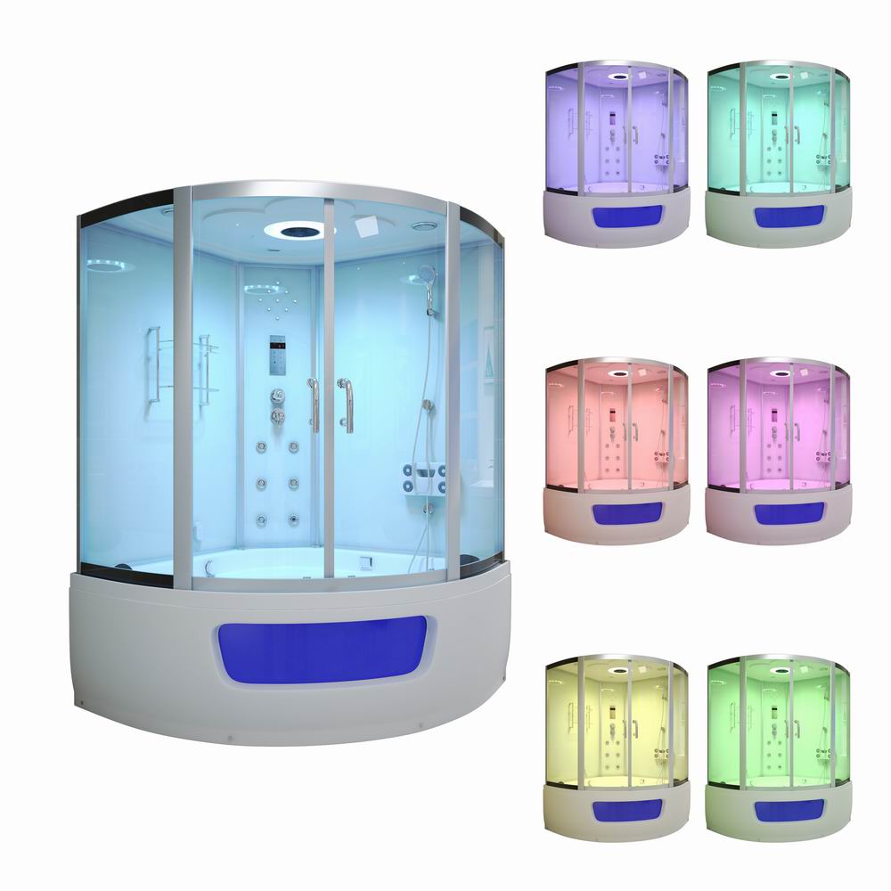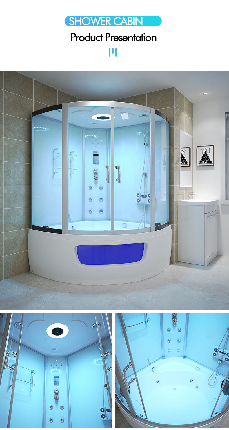| Lujosa ducha top fija Lujosa lámpara superior Panel de control de computadora Ventilador de ventilación FM Radio y altavoz Teléfono con manos libres Grifo de agua caliente y fría Lámparas de techo y fondo Masaje afilado Estante lujoso Estante de champú y riel de toalla Mango de ducha. Dispositivo de masaje de pies Drenador de hormigas | Vapor Mezclador termostático Whirlpool |