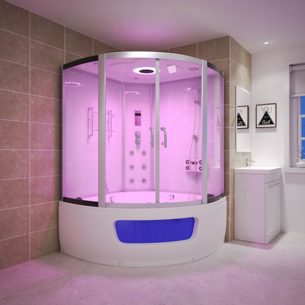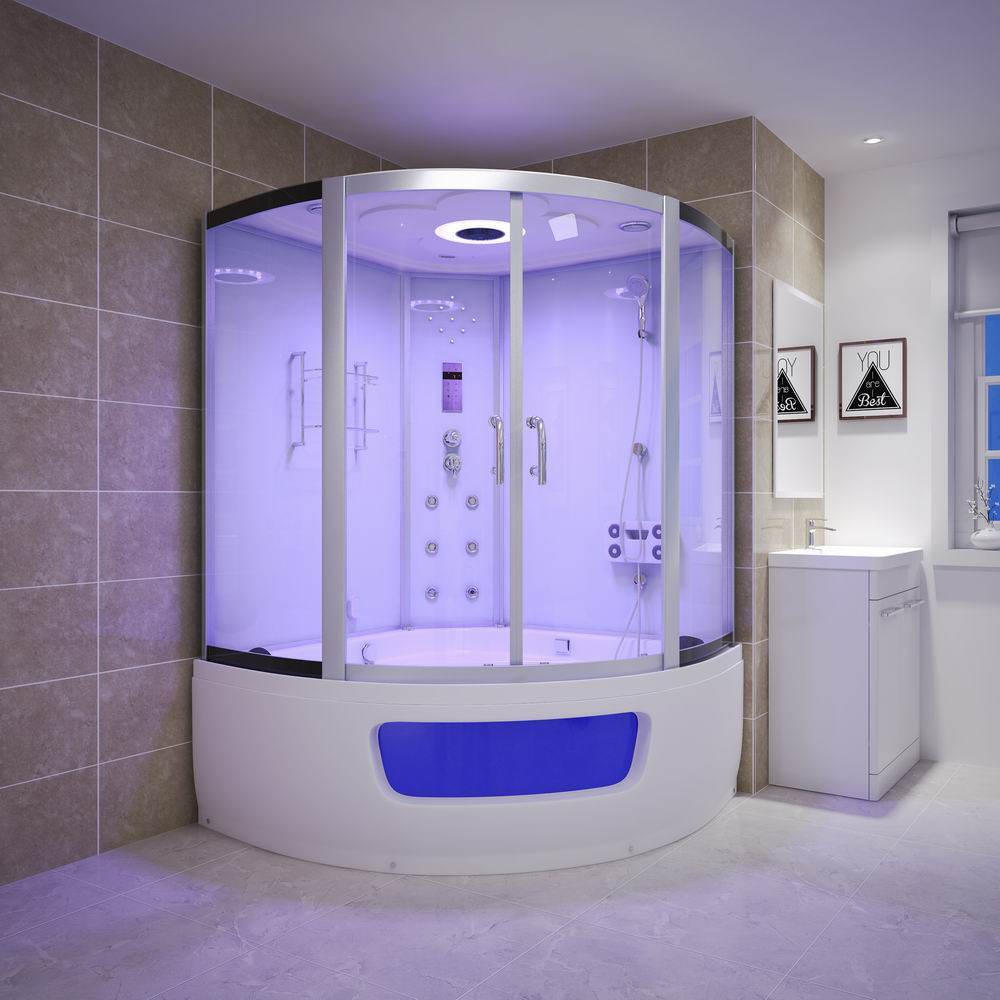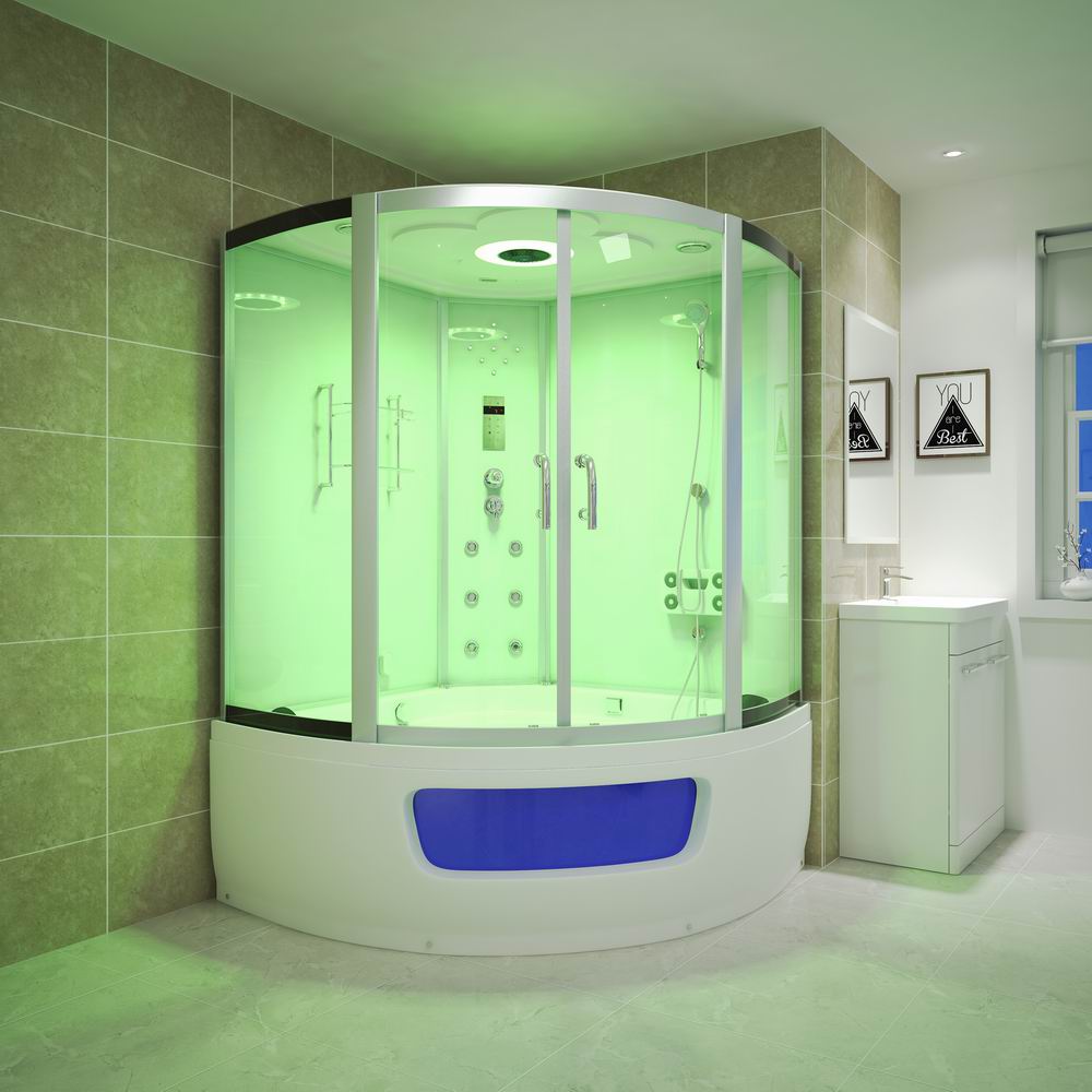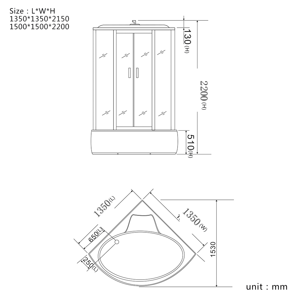 | Lujosa ducha top fija Lujosa lámpara superior Panel de control de computadora Ventilador de ventilación FM Radio y altavoz Teléfono con manos libres Grifo de agua caliente y fría Lámparas de techo y fondo Masaje afilado Estante lujoso Estante de champú y riel de toalla Mango de ducha. Dispositivo de masaje de pies Drenador de hormigas | Vapor Mezclador termostático Whirlpool |