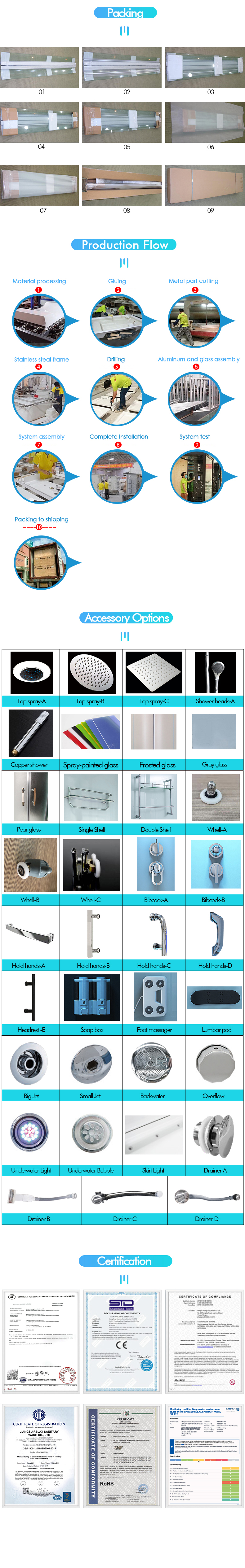 2. Vidrio endurecido de 5 mm, marco de alumbre, bandeja de ducha alta/baja
