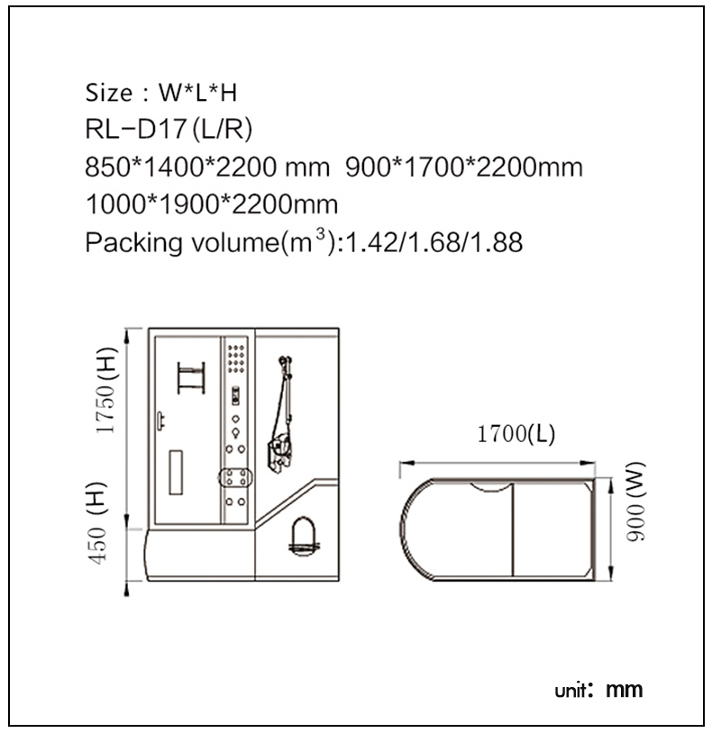 | 900*1700*2200 mm (35.4*67*86.6 '') | |
