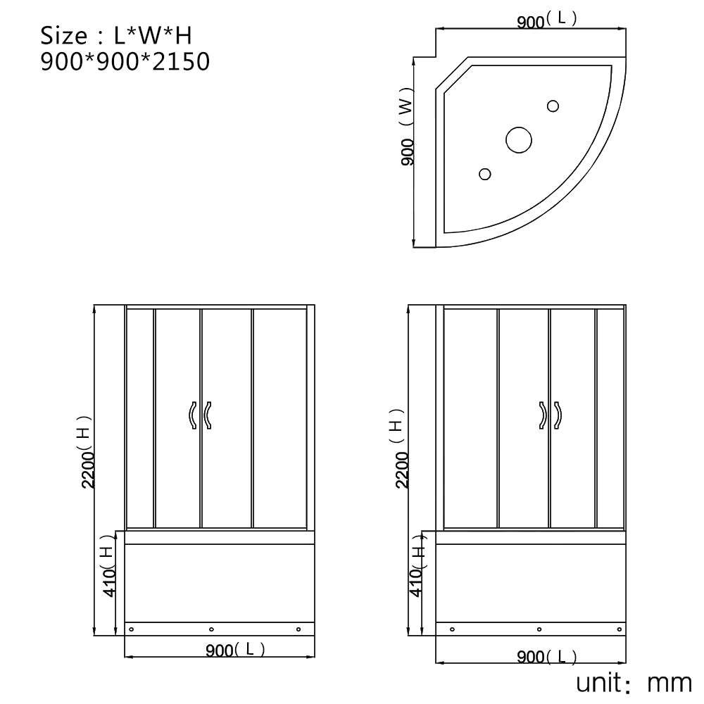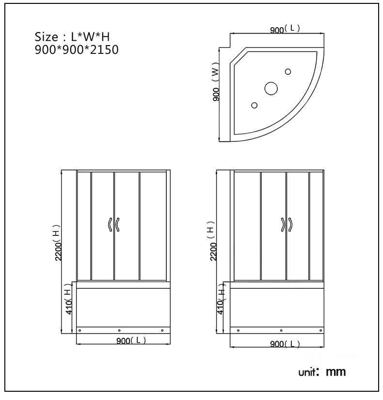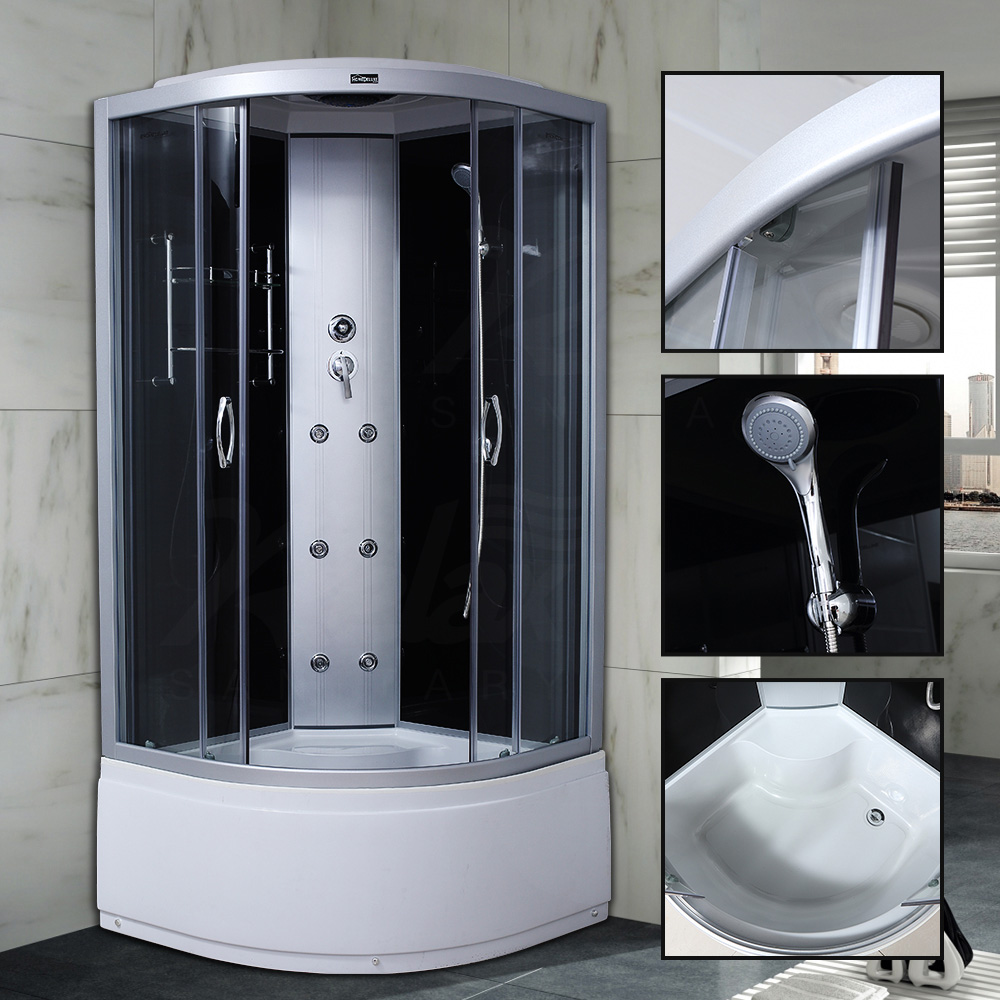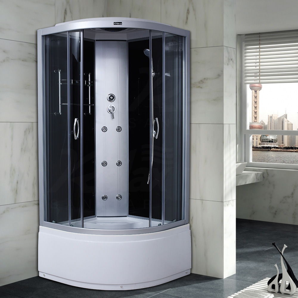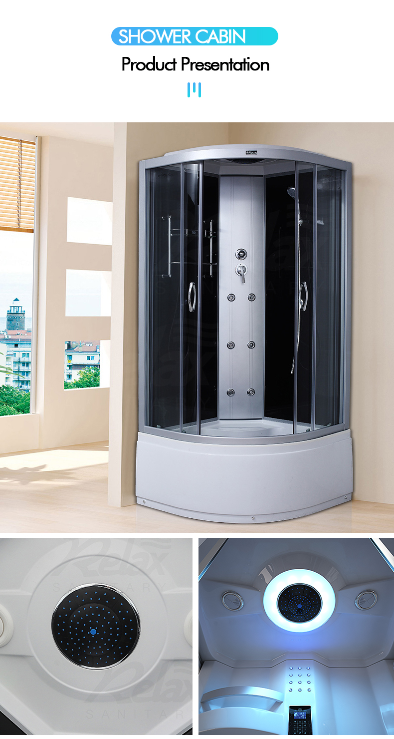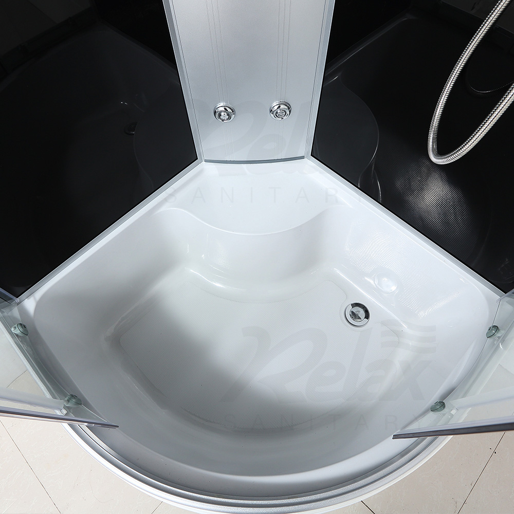 Home / Product / Shower Cabin / Steam shower cabin with whirlpool / Puerta de vidrio corredizo transparente Cabina de ducha negra RL-C20