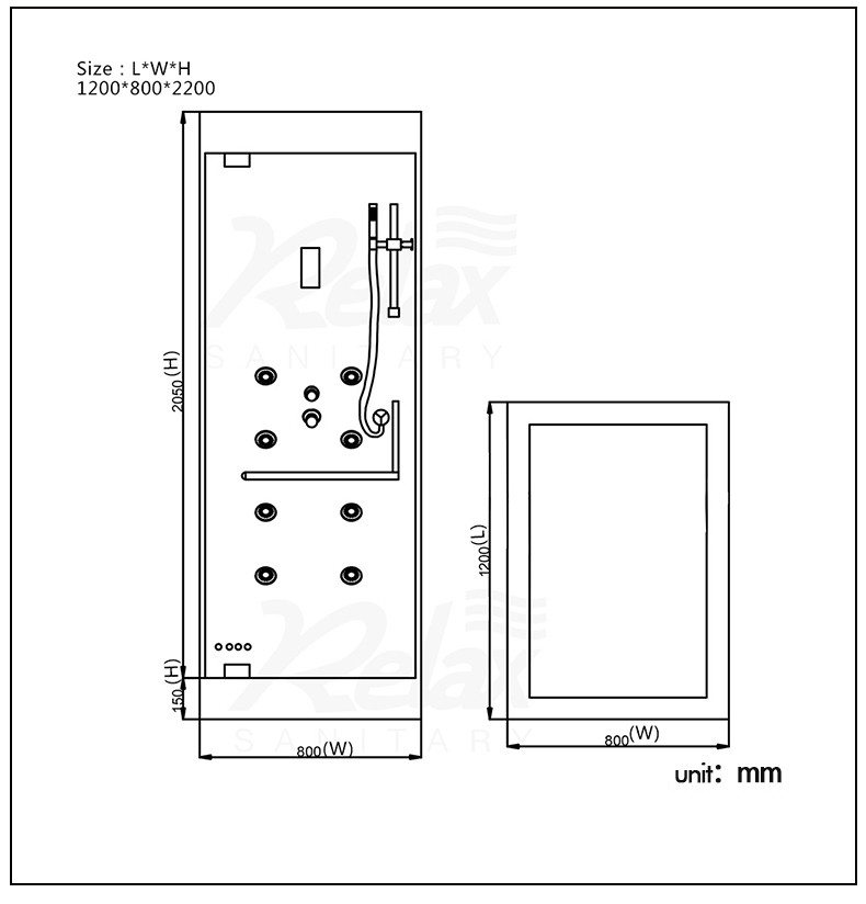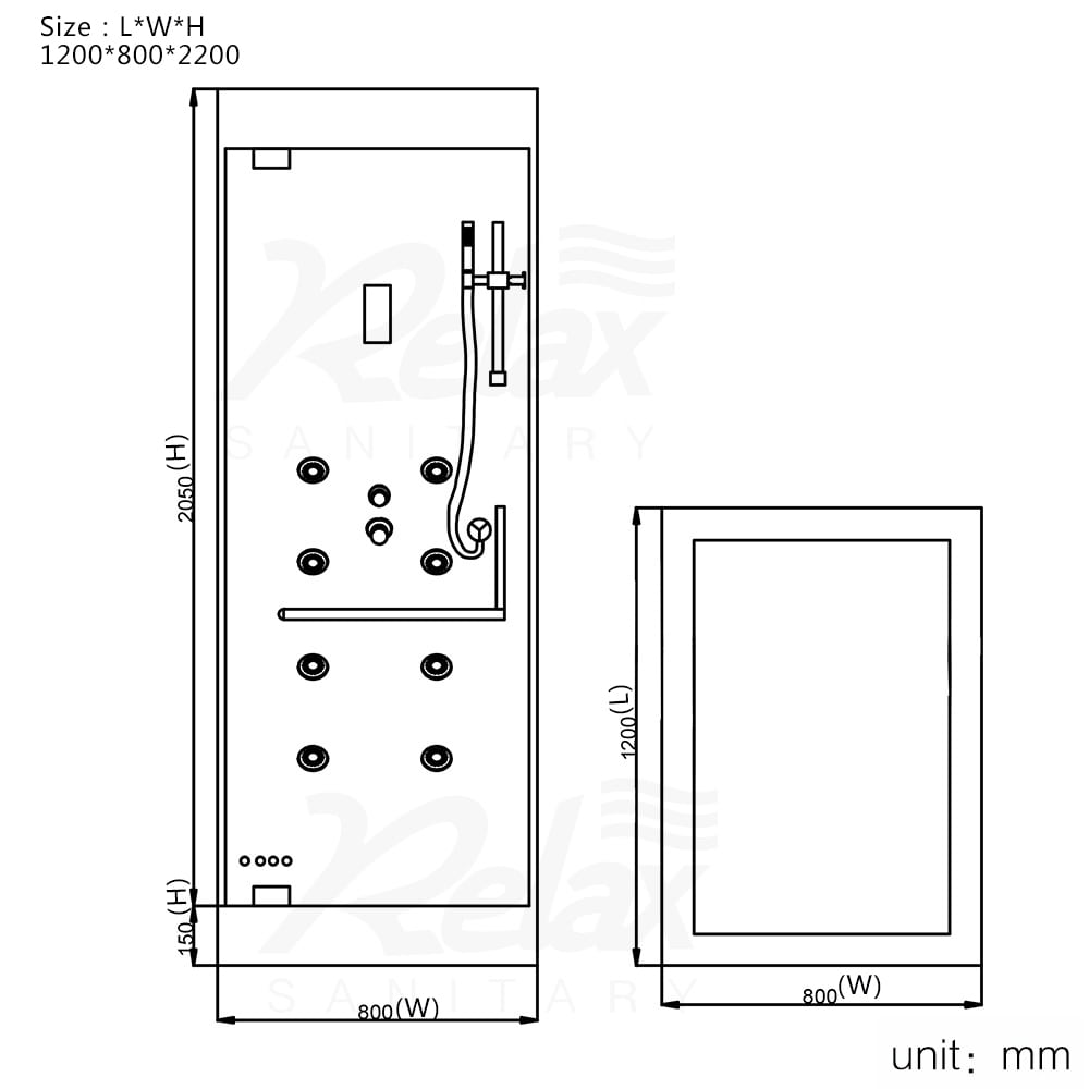 Home / Product / Shower Cabin / Steam shower cabin / Diseño de modelo 3D de vidrio de 6 mm Cabina de ducha de vapor Sala de vapor L/R RL-C10