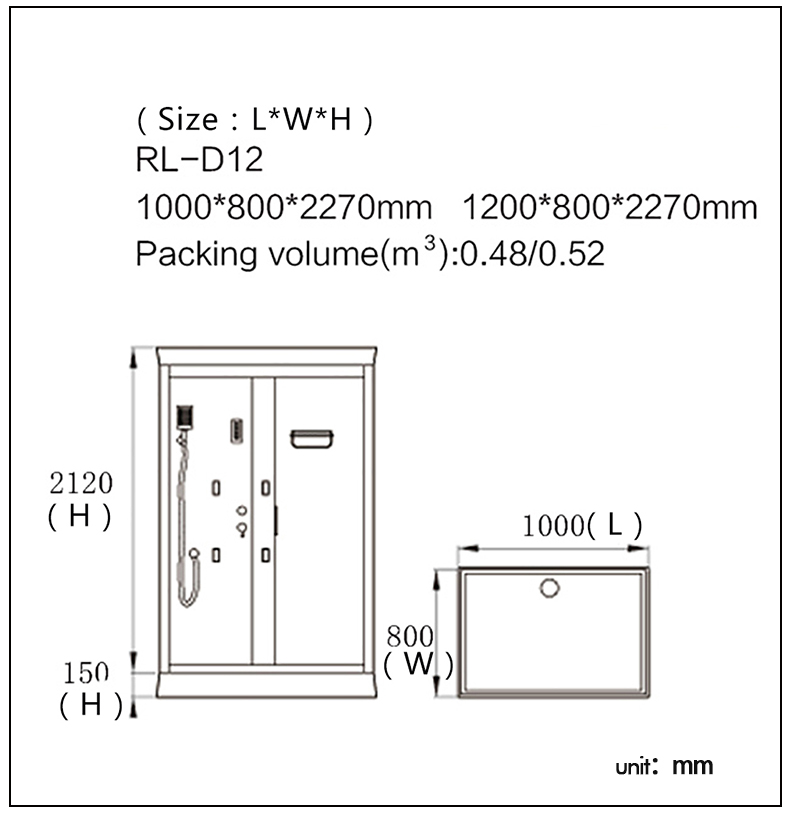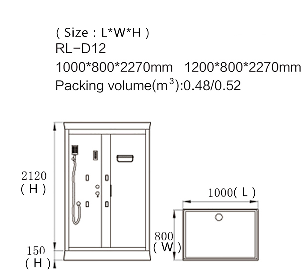 Home / Product / Shower Cabin / Steam shower cabin / Cabina de ducha cerrada rectángulo negro RL-D12