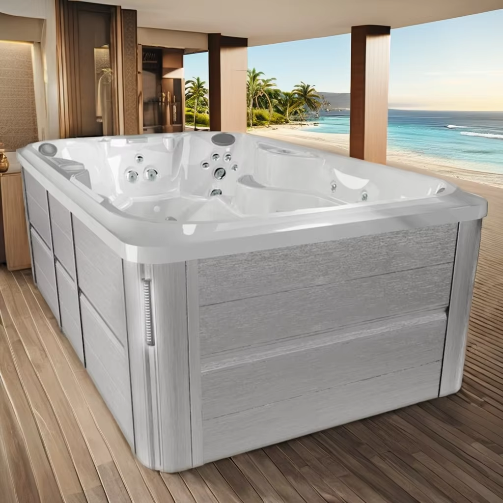 Mejore su experiencia de natación al aire libre con nuestra piscina de spa para nadar al aire libre. Nuestro generador de ozono garantiza agua limpia y desinfectada, mientras que el techo de canalones incorporado y el tobogán de agua proporcionarán una diversión interminable para usted y su familia. Actualice su piscina con esta adición imprescindible.
