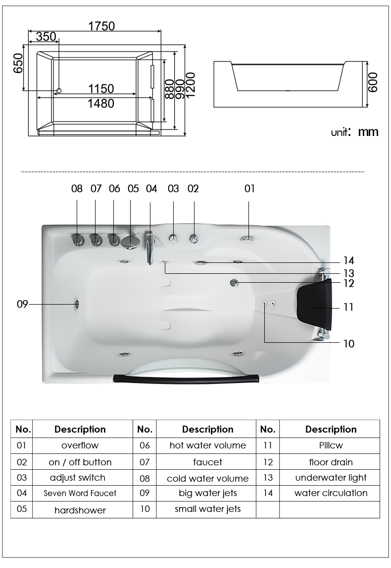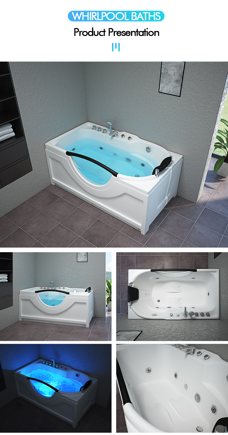 Home / Product / SPA&BATHTUBS / Massage Bathtub / Rectangle Massage bathtub / Burbuja de aire con luz LED Massage Massage Rectangular Bathtub 1600x880mm RL-6144