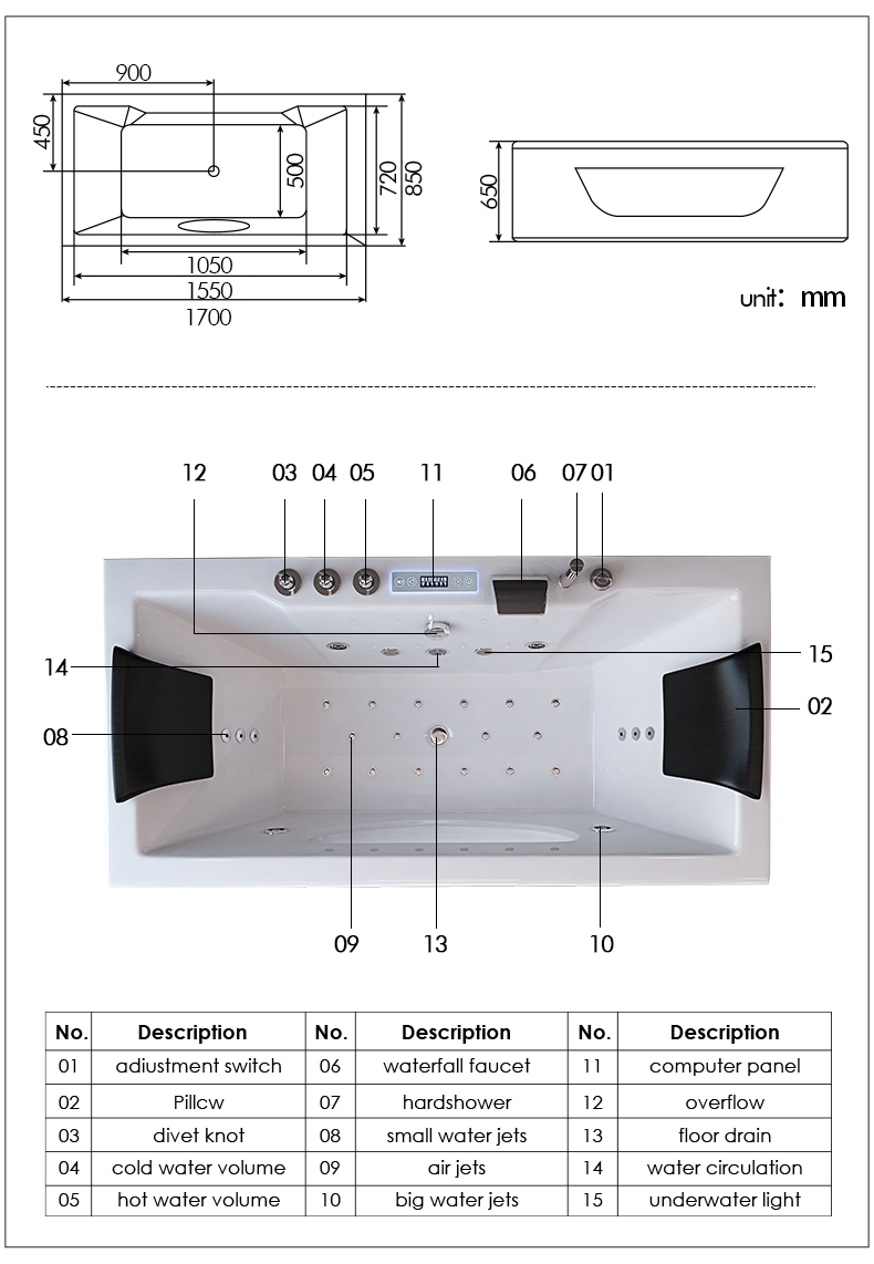 | 1700*850*650 | 1.3.2 mm de material acrílico