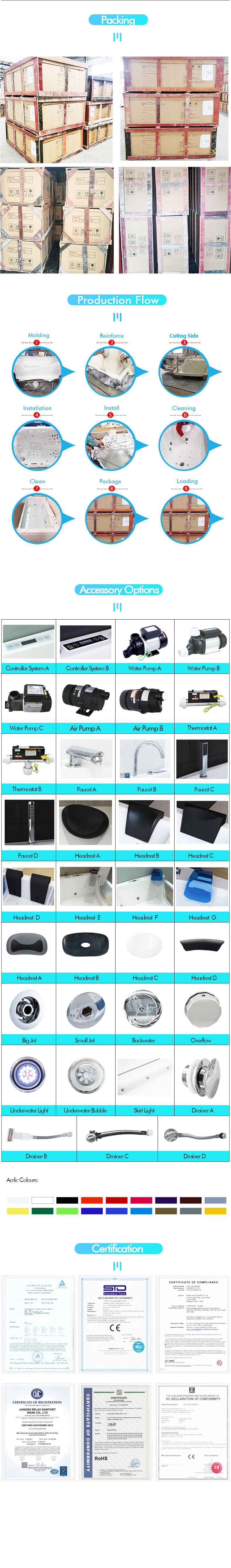 Aviso: 1. Para la limpieza diaria, la bañera de masaje se puede limpiar con detergentes líquidos comunes y tela blanda, pero no use detergentes que contengan acetona o amoníaco. Si hay manchas y cintas adhesivas que se adhieren a la superficie del cuerpo de la bañera, es posible eliminarlas limpiando suavemente con un paño suave asaltado por una pequeña cantidad de gasolina.